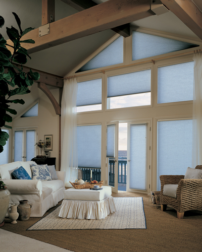 Apex Décor Group carries the full line of Hunter Douglas Honeycomb shades. Our collection includes the super energy efficient and very stylish Duette Honeycomb shades. The Hunter Douglas Duette Honeycomb shades has hundreds of colors across an array of beautiful fabrics and textures. Further customization of styles, features and lift systems including the PowerView automated lift system make these an all around great product for any Pacific Northwest home. Contact Apex today to schedule your in-home measure and consultation.