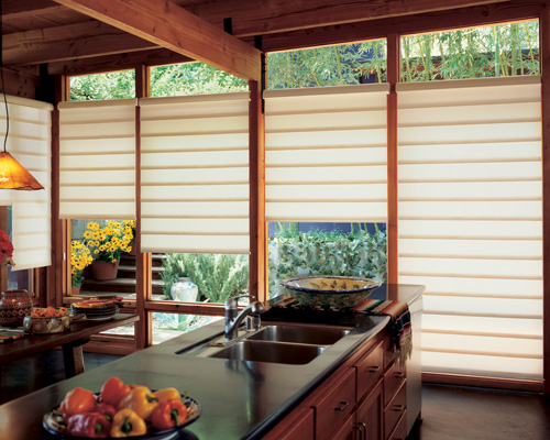 The Hunter Douglas Vignette Modern Roman shades are the perfect combination of modern design with the timeless Roman style. Vignettes have so many fabrics, textures, colors features, styles and lift systems to choose from including the PowerView automated lift system. Contact Apex today to schedule your in-home measure and consultation.
